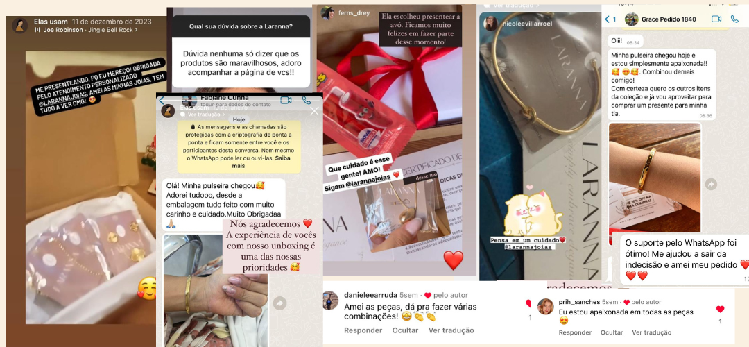 As peças da Laranna possuem de 5 a 7 camadas nos brincos e 10 milésimos em anéis, pulseiras e colares. Além de serem hipoalergênicas (níquel free).